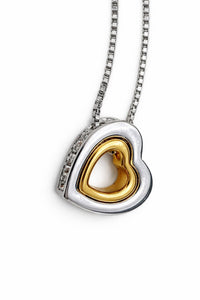 Its two-tone heart design, surrounded by radiant crystals, reflects the beauty of what truly matters—