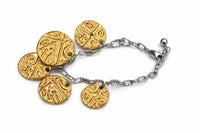 Inspired by the coins of a physical treasure, this piece reinterprets the true meaning of wealth. Each textured medallion evokes ancient, valuable pieces… not for their price, but for what they represent.