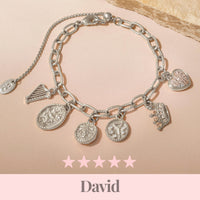 Each charm in this piece reflects a moment of divine preparation and promise: 🎵 Harp — Worshipper in Spirit and Truth: a reminder that David’s strength began in worship, not in battle. 🐑 The Good Shepherd — Chosen from the Humble: because God delights in choosing what the world overlooks to fulfill His plans. 🦁 Lion & Bear — Past Victories: symbols that remind us our past battles become strength for future triumphs. 🪶 Sling & Five Stones — Faith in Simplicity: because God uses the simple things we hold in our hands to bring great victories. 👑 Crown engraved The Shepherd — Compassionate Leadership: for David ruled with the heart of a shepherd — strong, yet tender. 💖 Heart engraved Godly — A Heart After God: a symbol of devotion, repentance, and unwavering love for the Lord. This story calls us to trust our divine destiny — to remember that even when the world sees “just a shepherd,” God already sees the king within.